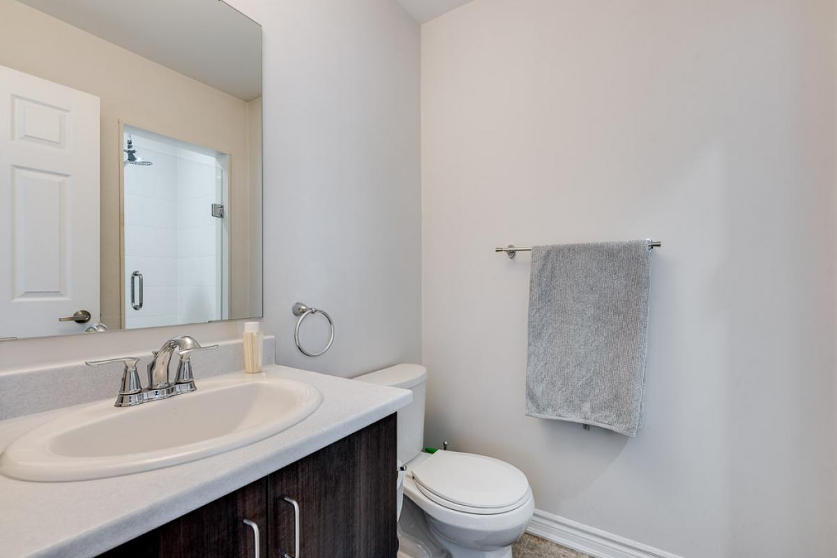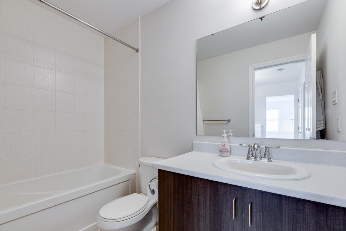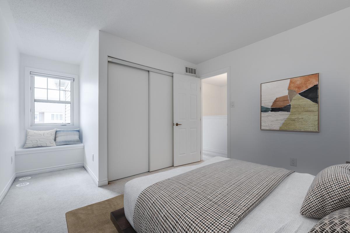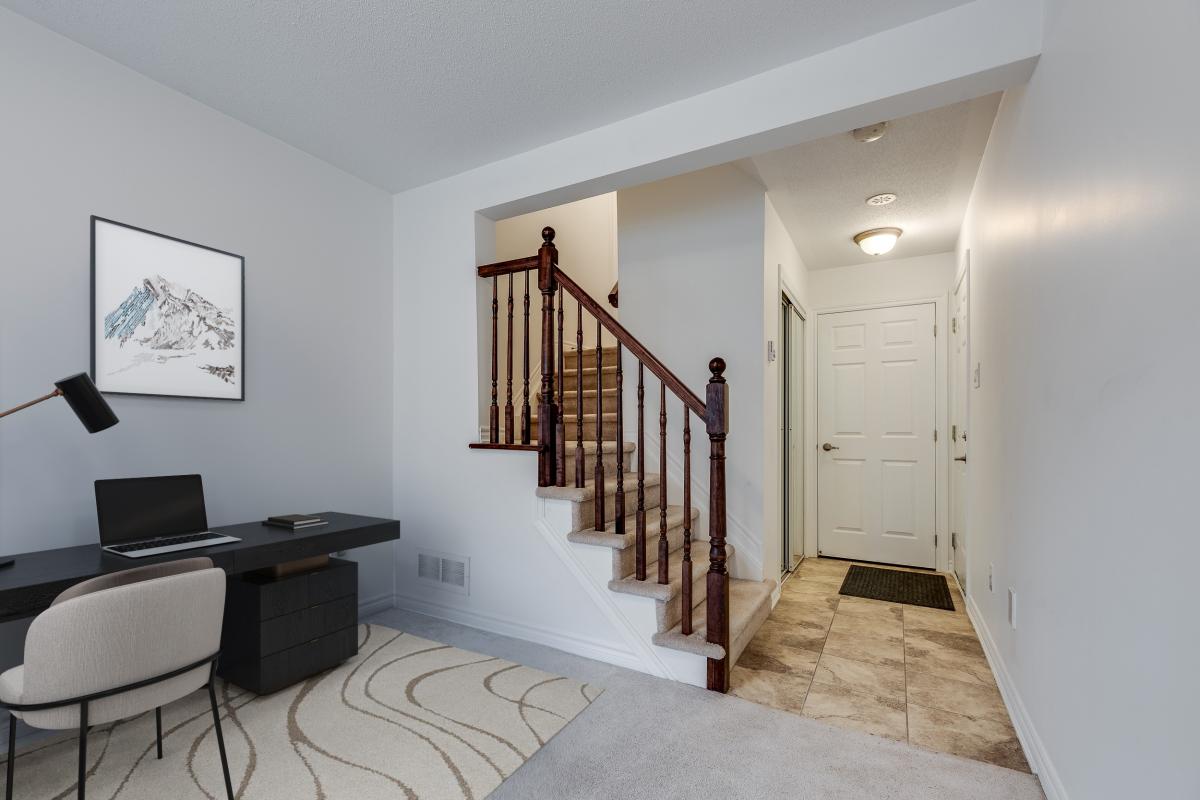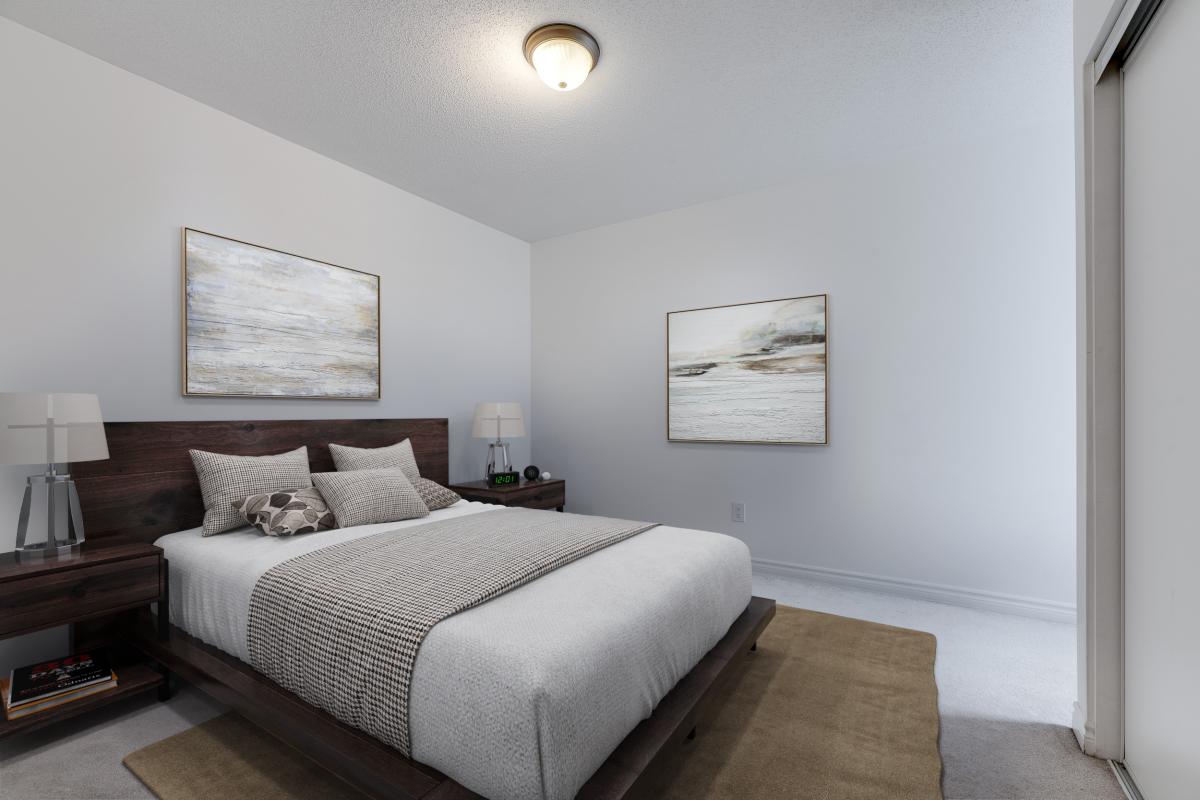 Step into this charming 3-level stacked row unit nestled in the neighborhood of Half Moon Bay. Featuring 2 bedrooms, 2.5 bathrooms, and a versatile den. Upon entry, you're greeted by a den, ideal for a home office or study area, while the ground level also features convenient access to the attached garage. Ascend to the main level, where an open-concept layout awaits, featuring a functional kitchen with stainless steel appliances and ample storage, seamlessly flowing into the inviting living/dining area flooded with natural light. Indulge in relaxation as you step onto your private balcony. Venture upstairs to discover a spacious primary suite with a walk-in closet and an ensuite bathroom, along with a generously sized second bedroom and a well-appointed full bathroom. Located in a great community, enjoy easy access to parks, trails, schools, dining, and entertainment options. Embrace the convenience of urban living while relishing the tranquility of suburban charm.